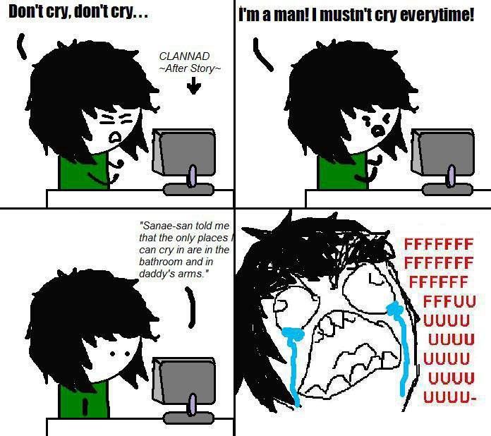 Clannad was the first anime, which made me cry for hours. And 'cause of that it's one of my favorite animes. Every time I see the moment when Nagisa dies while giving birth to Ushio, I can't stop my tears.